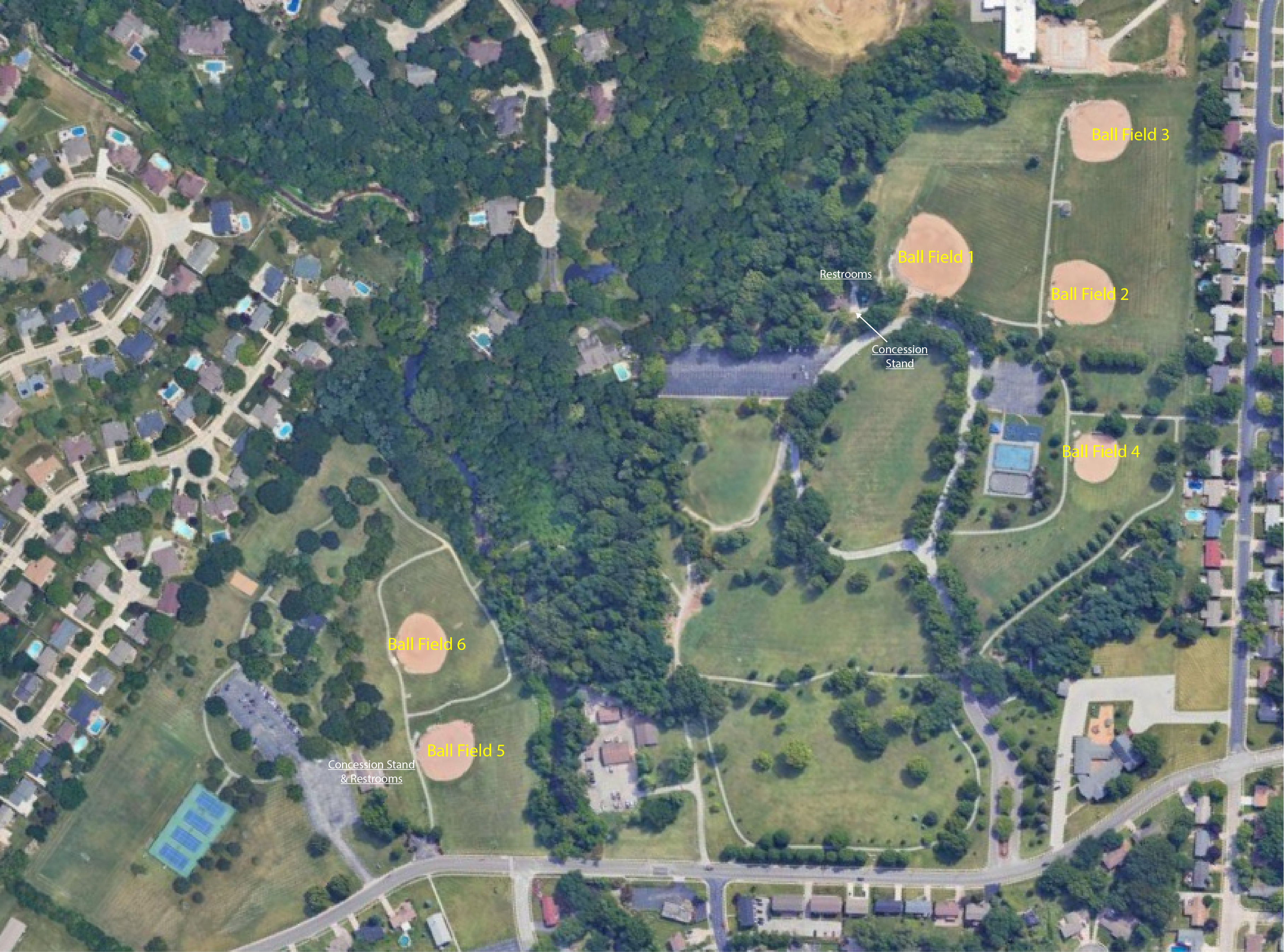 McNair is divided into two sections by a creek and surrounding woodland area. The smaller section north of the creek is the “Day Camp” area of the park, and the larger south section is the “Main Area.” Both sides provide a mix of passive and active recreation and area connection by the parks internal loop trail system which also connects the park to surrounding neighborhoods.
