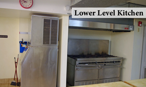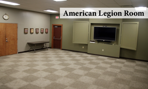 Large auditorium with hardwood floors, two small side rooms (American Legion Room and VFW Room), restrooms and a large kitchen space with a partition window that opens up to the auditorium. Rental fee also includes the set up and break down of the tables and chairs. A parks event staff member is required for all events, including alcohol/soda service. Depending on event needs, a second staff member may be needed (see concessions section below for details).