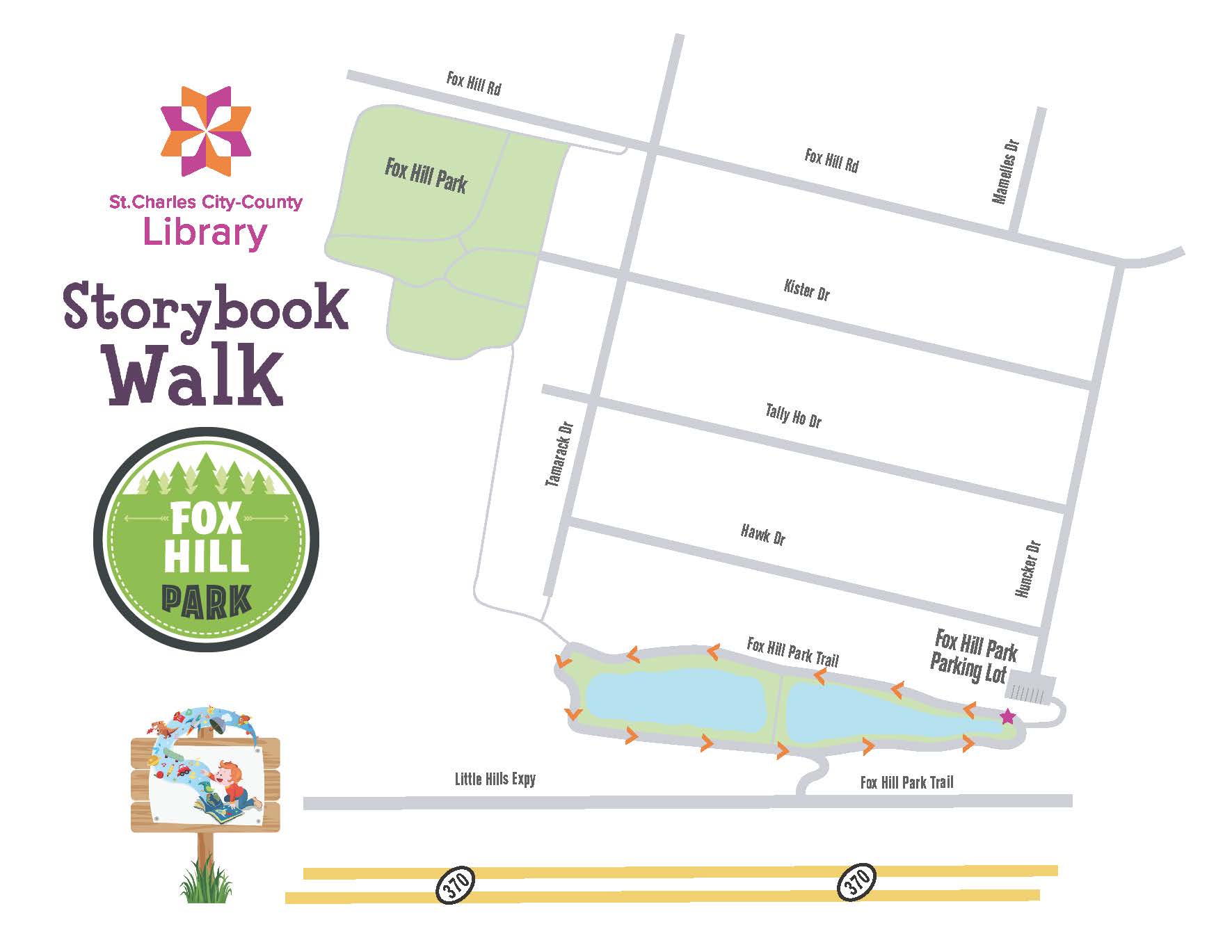Fox Hill Park is divided into two main sections that are linked by a paved trail. This park consists of an open native landscape area with a loop trail around two interconnected lakes and also along this trail is our Storybook Walk. The Storybook Walk is a partnership between the St. Charles Parks and Recreation Department and the St. Charles City-County Library Foundation. The 16 post walk is located around the two lakes in the park and is updated monthly.
